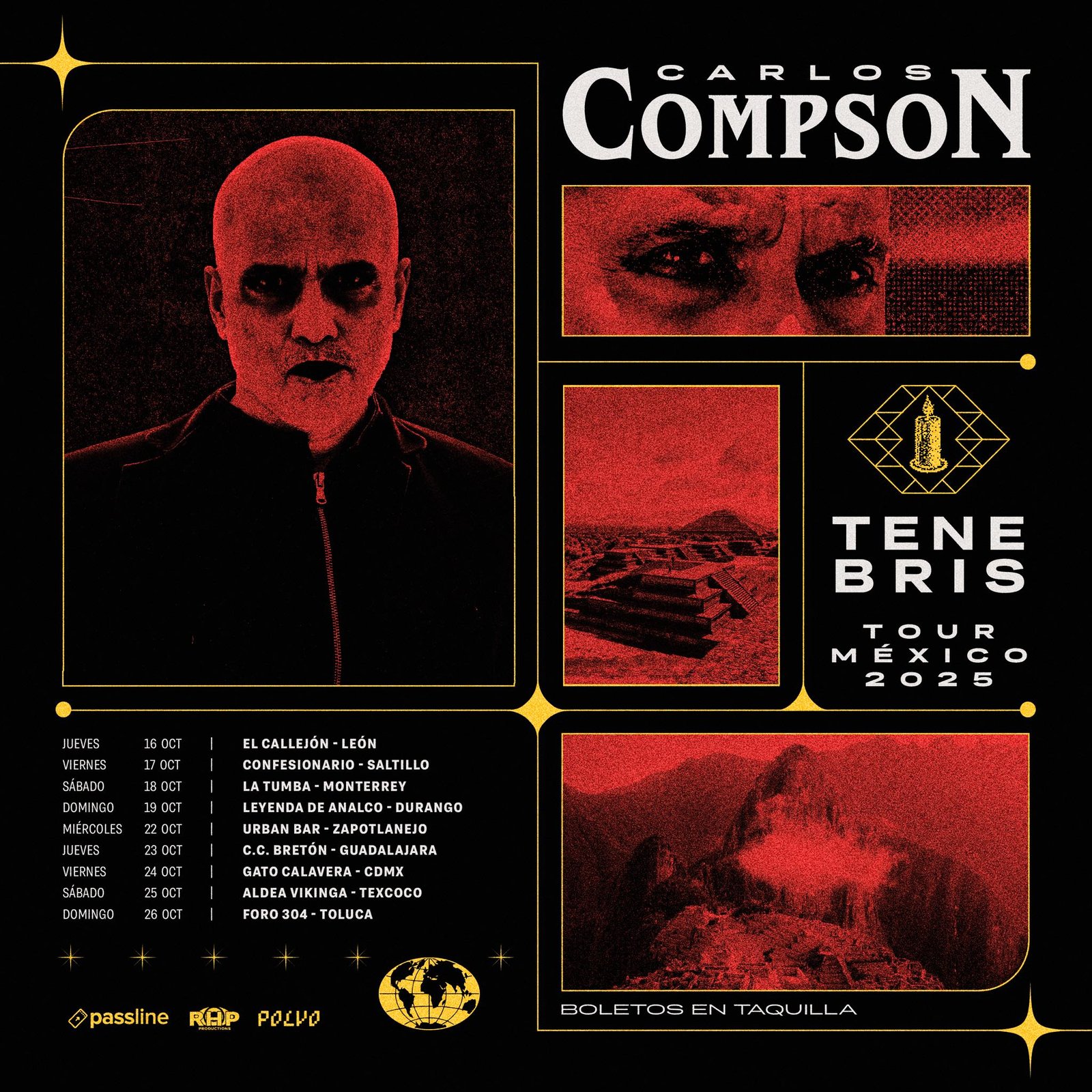 El vínculo se confirma con el Tenebris Tour México 2025, una gira que llevará al músico por nueve ciudades. Del 16 al 26 de octubre, Compson se presentará en escenarios emblemáticos de León, Saltillo, Monterrey, Durango, Zapotlanejo, Guadalajara, Ciudad de México, Texcoco y Toluca. Las fechas confirmadas son: