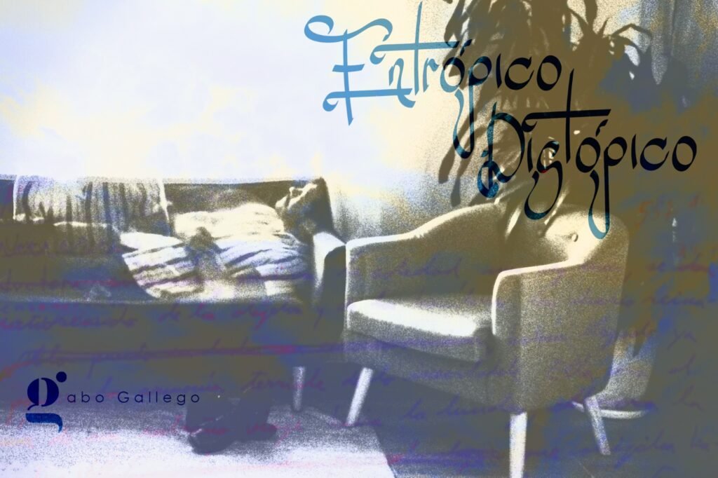 ‘Entrópico Distópico’ es el nuevo disco de Gabo Gallego. Es la declaración de independencia existencial contra la vida vista como un molde prefabricado. El disco habla desde la posición de una persona que aprende a soltar una relación, a preguntarse por el sentido de su vida sin forzar el destino de esta. Las 5 canciones son un viaje individual en el que se plantea la renuncia liviana y placentera, la madurez de aprender a soltar, la fantasía íntima de estar con alguien que no se puede tocar y la despedida de un ciclo de la vida que se acaba para abrir una nueva etapa.