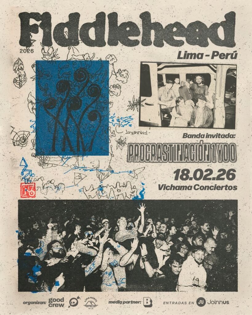Fiddlehead finalmente aterriza en Lima. Este miércoles 18 de febrero, la agrupación estadounidense ofrecerá su primer concierto en la ciudad en Vichama Conciertos, en una fecha que promete reunir a seguidores del hardcore emocional y del rock alternativo contemporáneo. Adquiere tus entradas para Fiddlehead en Lima 18/02, aquí.