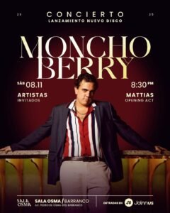 A lo largo de su carrera, Moncho Berry ha trabajado en estudios de Nueva York y Boston, además de colaborar con artistas como Oscar D’León, Daymé Arocena, Tiare, Kanaku y El Tigre, Carlos Cruzalegui, Alejandro y María Laura y Maya Endo. Con este nuevo disco, reafirma una estética alternativa e indie, marcada por la experimentación con sintetizadores, guitarras eléctricas y grooves modernos, consolidando un lenguaje artístico cada vez más personal y contundente.