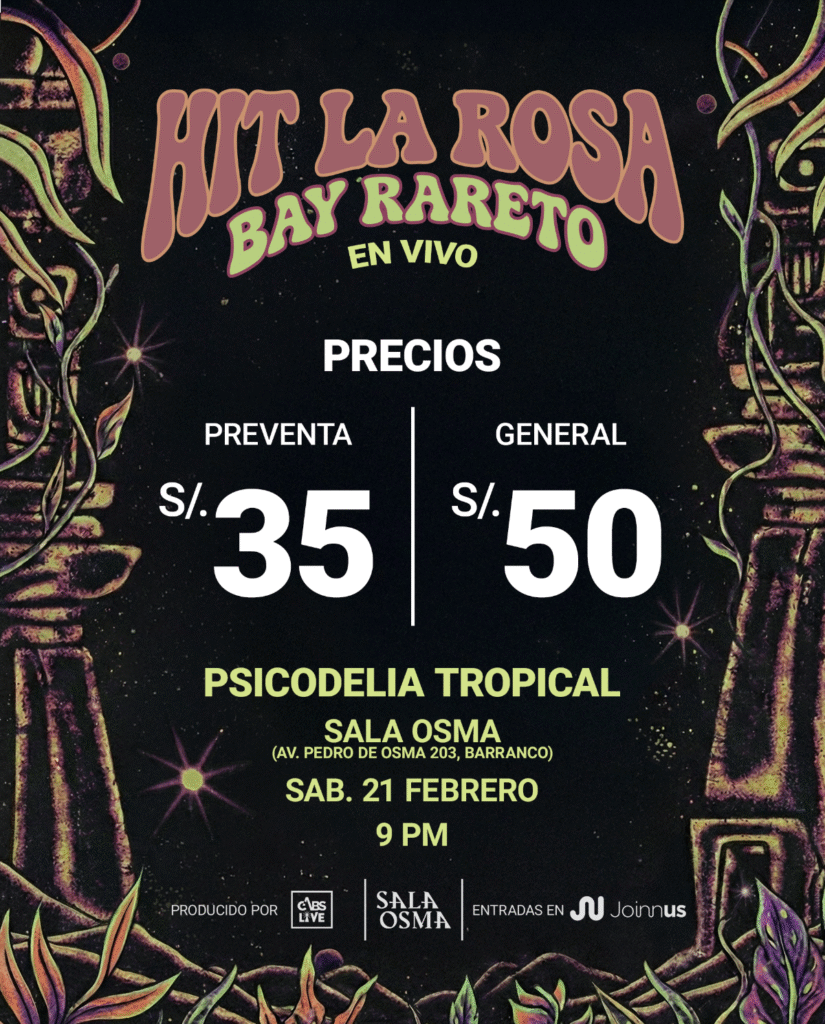 Esta reunión ocurrirá el sábado 21 de febrero en la emblemática Sala Osma de Barranco, ubicada en la avenida Pedro de Osma 203. Las entradas se encuentran disponibles en la plataforma Joinnus y la preventa está llegando a su etapa final debido a la alta demanda por ver a estas dos agrupaciones juntas. El ambiente de la casona barranquina promete una acústica ideal para disfrutar cada detalle de este doble cartel imperdible. Es el momento perfecto para encontrarse con amigos y dejarse llevar por la propuesta de Hit La Rosa y Bay Rareto en una noche que marcará la agenda de este verano.