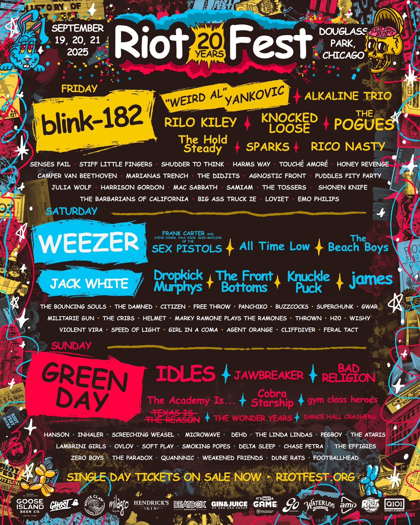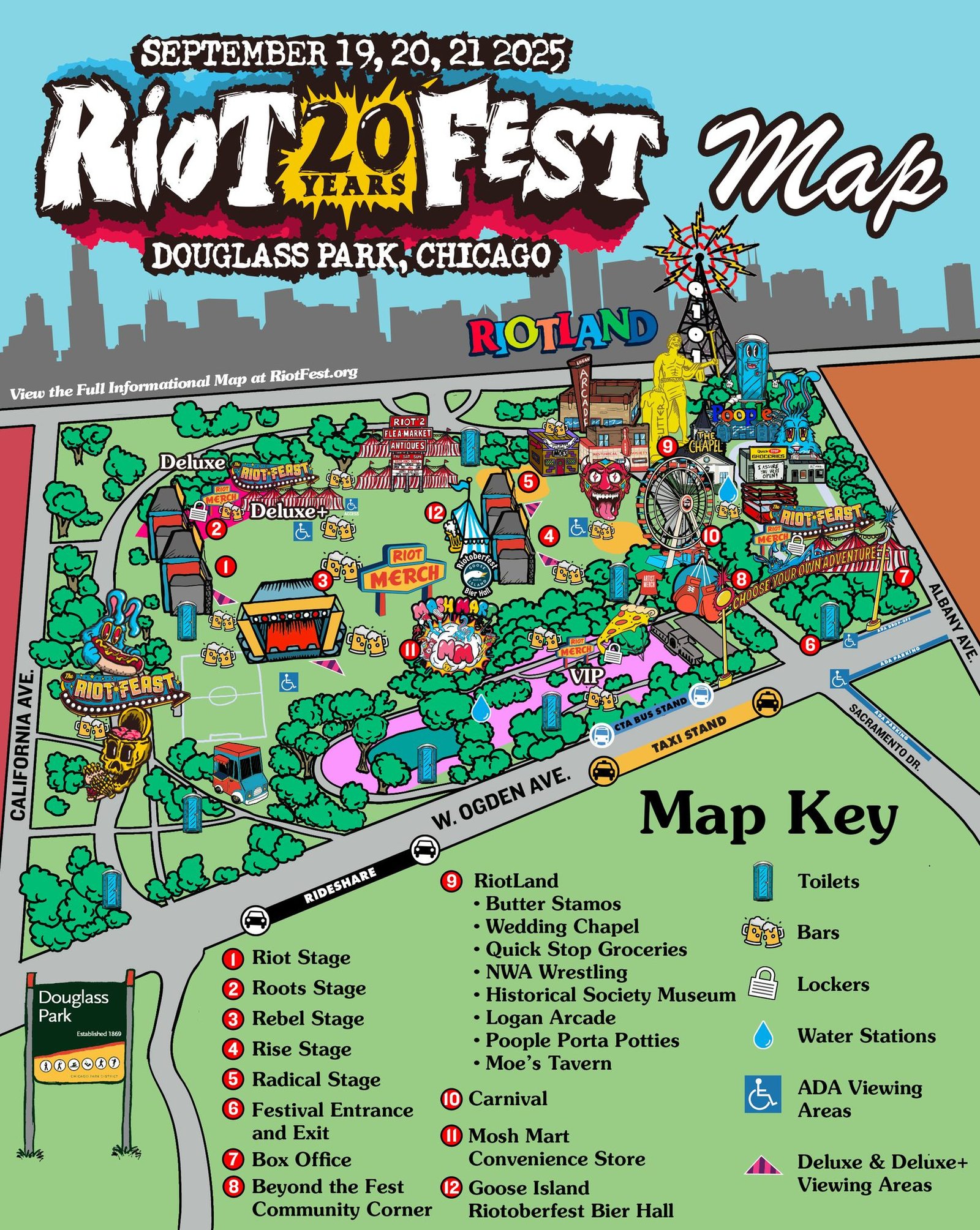 Fundado en 2005, Riot Fest nació como un encuentro para el punk rock en Chicago y pronto se expandió hacia géneros afines como el emo, el indie, el hardcore y el pop rock. Su sello distintivo es combinar reuniones legendarias, shows únicos y álbumes interpretados de principio a fin, lo que lo diferencia de otros festivales.