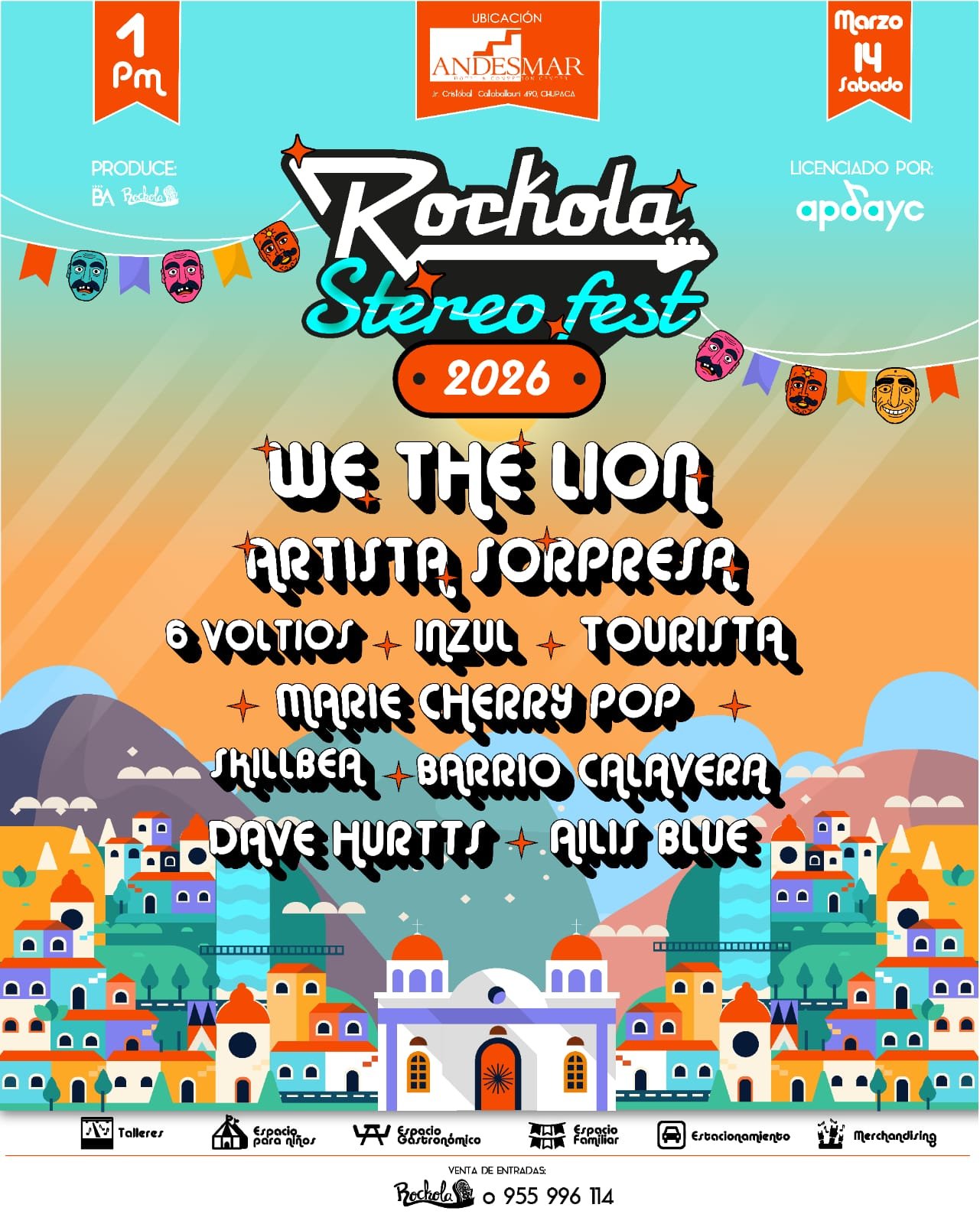 Esta primera edición presenta un cartel encabezado por We The Lion junto a una banda estelar sorpresa que representa la identidad local. El escenario recibirá también la energía de 6 Voltios, Tourista, Inzul, Skillbea, Barrio Calavera, Marie Cherry Pop y Dave Hurtts. La jornada integra gastronomía regional, ferias de emprendimiento y talleres creativos en un ambiente seguro para todas las edades. Las entradas se encuentran disponibles en etapa Early Bird por S/ 50.00 hasta el 15 de enero, luego a S/ 60.00 en preventa hasta el 15 de febrero y finalmente a un precio regular de S/ 80.00, permitiendo que los asistentes aseguren su lugar con antelación.