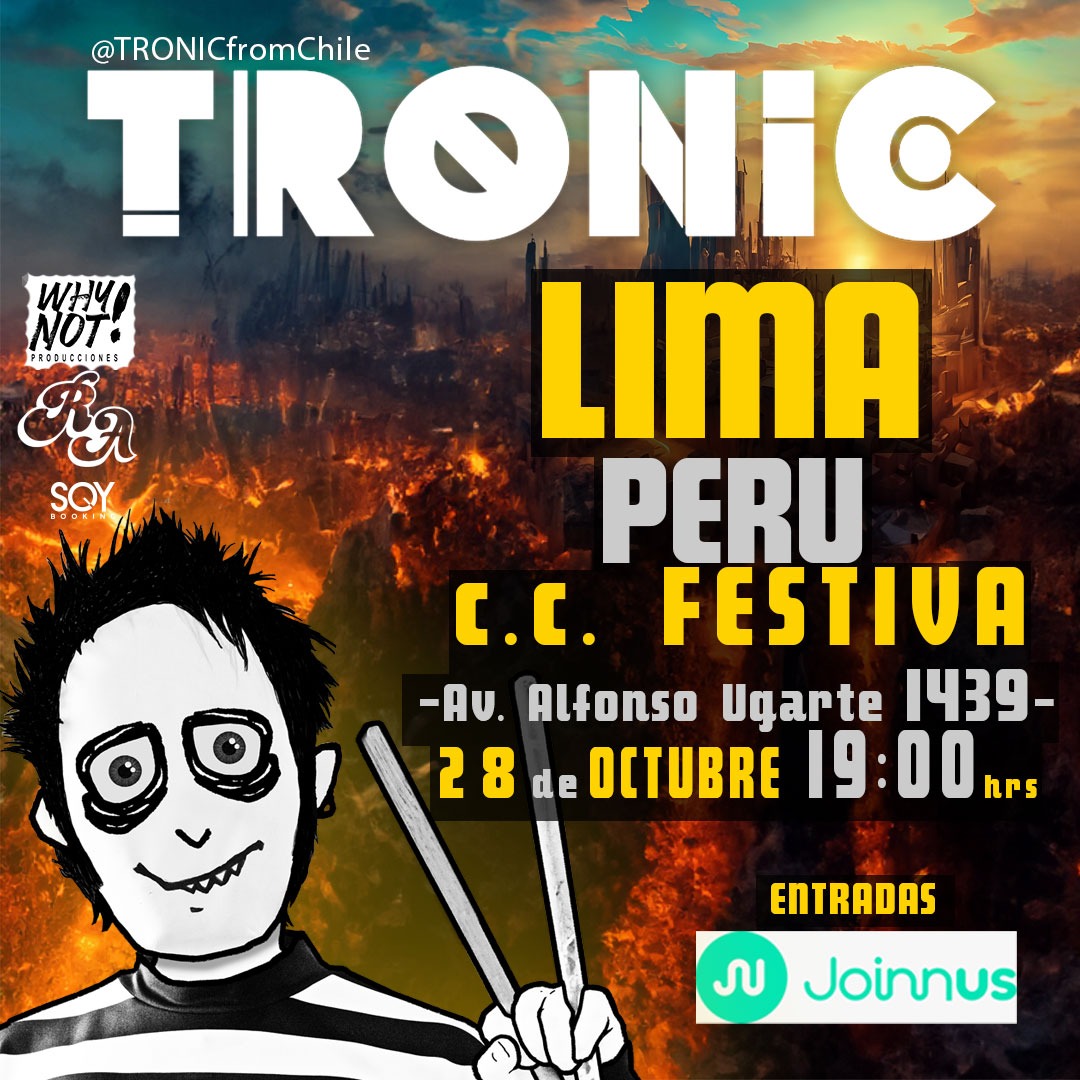 Tronic ha sido una banda independiente desde sus inicios, grabando y produciendo sus ocho discos de estudio de manera autogestionada, demostrando su compromiso con la libertad creativa y la autenticidad. Su música ha trascendido las fronteras y ha llegado a los oídos de millones de fans en Latinoamérica y el mundo. Perú es uno de los países que más ha acogido y apoyado a Tronic desde sus inicios. La banda visitó Lima en el 2018, cuando participaron en el festival “Vivo x el rock”, uno de los festivales más importantes del país, junto a otros grandes exponentes de la escena latinoamericana. El público peruano siempre ha demostrado su cariño y admiración por Tronic, cantando sus canciones a todo pulmón y llenando los recintos donde se presentan.
