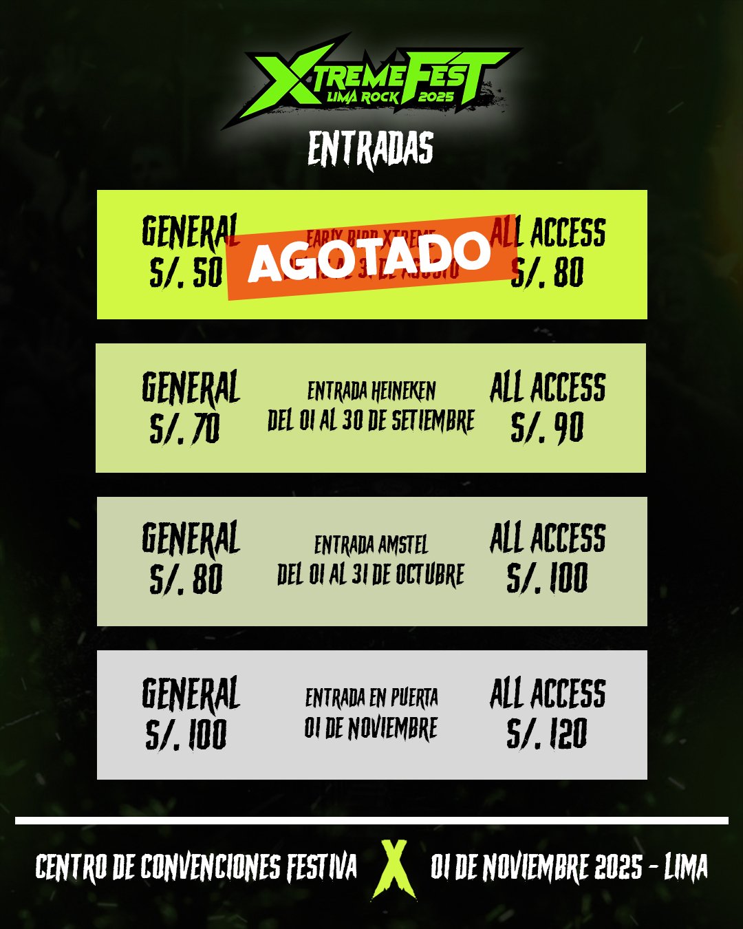 Las entradas están disponibles desde 70 soles en Passline y existe un pase All Access que permite ingresar al backstage, compartir un espacio íntimo de reencuentro con los artistas, tomarse fotos y participar en el sorteo de una guitarra eléctrica y otros premios. El Xtreme Fest Lima Rock se presenta también como una ocasión para que distintas generaciones convivan en un mismo lugar y compartan la emoción de una tradición que se niega a apagarse. La cita de noviembre puede marcar el inicio de una costumbre esperada por muchos años, donde memoria y futuro encuentran un terreno común para crecer juntos.